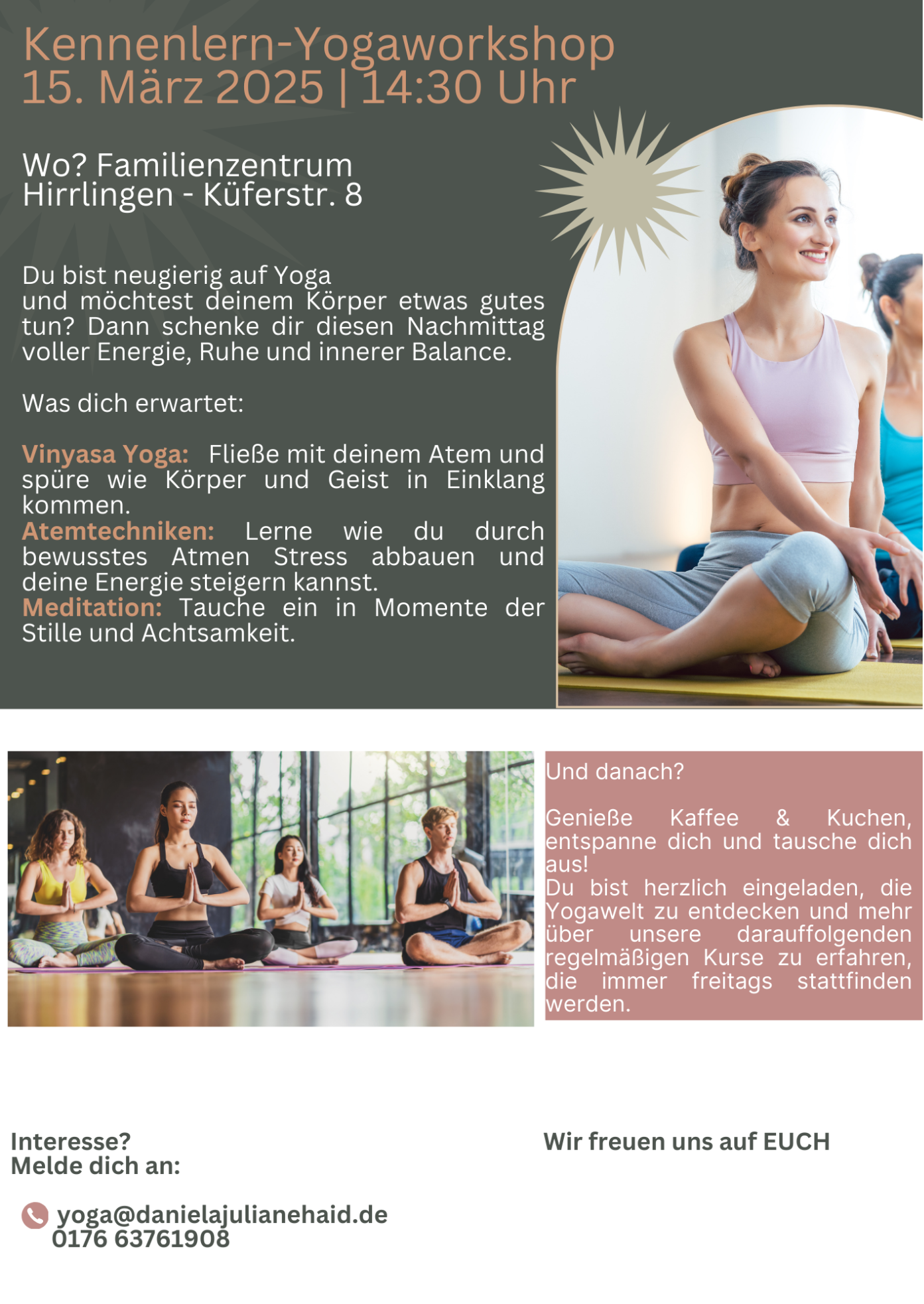 Kontaktiere uns für weitere Informationen oder buche gleich deinen ersten Kurs bei Daniela Juliane Haid Yoga.